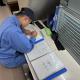 エンジンの燃焼状態をチェックする実習です。