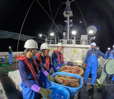 水産食品科1~3年生による「ムラサキイカ味付け缶詰製造実習」を実施しました。