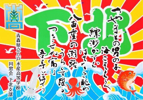 本校同窓会下北支部(三国幸夫支部長)で、同窓会支部旗とステッカーを作成していただきました。