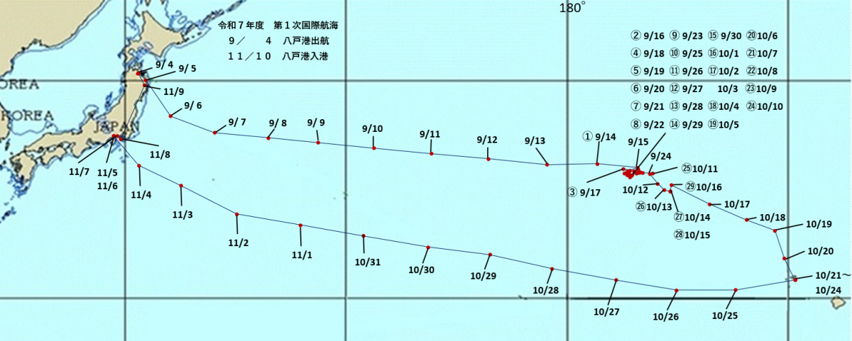 10月25日(土) 昨日16時50分(現地時間)ホノルル出港、三崎向け帰航中。11月7日三崎入港予定。